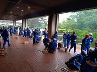 夜のプログラムは当初ナイトハイクの予定でしたが、雨天のため、明日のキャンプファイヤーのスタンツの練習となりました。仕上がりは順調で明日が楽しみです。