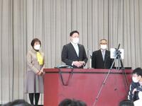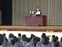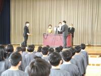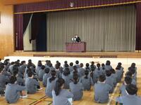 3月10日(金)全校集会を行いました。今回は5・6年生が体育館に集まり、それ以外の学年は各教室からリモートで参加しました。集会に先立って、鎌田地区青少年健全育成会様から、各学級にといただいていたドッジビーの寄贈式を行いました。誉田会長から運動委員会の委員長へ寄贈していただきました。そのあと、東日本大震災の追悼集会を行いました。1分間黙とうの後、校長より震災によって起こったことを振り返りながら、震災にまつわる話をしました。震災については、今日明日とテレビのニュース等でも取り上げられますので、各ご家庭でも子どもたちと震災について話す機会を設けていただけるとありがたいです。