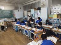 体育館では2年生が体育の学習中でした。なわとび練習前の基礎運動を行っていました。軽やかなステップでとても上手に動けていました。音楽室では3年生が楽器に合わせて「お菓子の国の魔法使い」を練習していました。とても楽しそうに歌っていました。