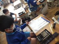 11月17日(木)3年生の学級で書写の学習をしていました。小筆を使って、新年のあいさつを書写していました。今年のお正月には小筆で年賀状も書けそうです。