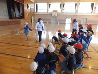 11月18日(金)2年生で教育実習をしている実習生の体育の授業がありました。ぼーりけりゲームをやりました。まずは、的に向かって上手にけれるように練習しました。はじめは横のほうにいてしまいなかなか的に当たらない子も多かったですが、練習を繰り返し行うことでだんだん的に当てられるようになりました。最後に、チームごとに交代でボールをけりあい、得点を競いました。子どもたちもけり方を工夫しながら楽しく運動することができました。