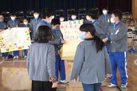 まず、鼓笛隊の移杖を行いました。6年生の指揮者・副指揮者から5年生へと指揮杖が引き渡されました。そのあと6年生と5年生の代表児童がそれぞれに鼓笛への思いを発表しました。6年生の思いをこれから5年生がしっかりと引き継いでいってくれるという思いがよく伝わりました。そのあと、各学級の代表児童がそれぞれに書き綴ったメッセージカードを6年生に渡しました。6年生への感謝の思いがたくさん綴られており、6年生も嬉しそうに受け取っていました。コロナ禍の中ということで、全校で集まったり、鼓笛の演奏をしたりすることはできませんでしたが、今まで学校の中心となって活躍してくれた6年生にたくさんの感謝の思いを伝えることができました。この会を中心となって企画・運営してくれた5年生もとても立派でした。