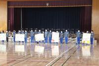 式終了後には、交通安全母の会の会長様より黄色い帽子やノートなどもいただきました。