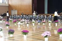 そのあと入学式を行いました。参加は入学生、保護者、教職員、2年生代表児童、来賓2名で行いました。新入生は緊張した面持ちで入場しましたが、担任の呼名に元気に返事をし、校長の式辞や来賓の言葉かけにも元気よく答えてくれました。最後に2年生が学校の生活の様子について発表してくれました。上手になったなわ跳びも披露してくれました。2年生の呼びかけや発表に興味深く見入っていました。