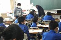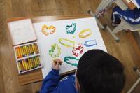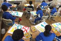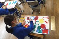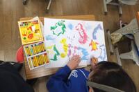 1月21日(金)。5年生教室では、ALTの先生と英語の学習をしていました。また、4年生ではEAAの先生と英語の学習行っていました。ALTとEAAの先生がいろいろなクラスに入っていただいて楽しく英語の学習を行っていただいています。また、2年生の教室を見てみますと画用紙をくりぬいて版画制作をしていました。色とりどりのきれいな作品がたくさんできていました。