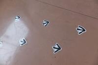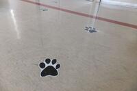 鎌田小学校の廊下・階段にたくさんの足あとを発見しました。いろいろなところにあるのですが、特に曲がるところにたくさんあります。