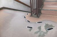 2022年1月31日 14時51分鎌田小学校の廊下・階段にたくさんの足あとを発見しました。いろいろなところにあるのですが、特に曲がるところにたくさんあります。