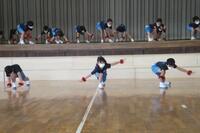 10月27日(水)体育館では6年2組の子どもたちが体育の学習で、バレーボールをやっていました。2チームに分かれて対戦形式で練習していました。3回つないで相手に返すのは難しいようで、苦戦していました。だんだん上手につなげるチームも出てきていますので、これからどんどん上達して楽しくゲームができるといいなと思っています。