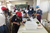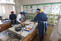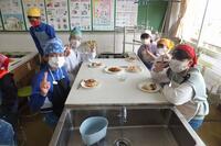 家庭科室では6年1組の子どもたちが調理実習をしているところでした。まん延防止中は調理実習などの学習はできませんでしたので、久しぶりの実習です。さすがに6年生。手際よくジャガイモの皮をむいたり、玉ねぎを切ったり、ピーマンにベーコンをまいたりして、ジャーマンポテトと野菜のベーコン巻きを完成させました。