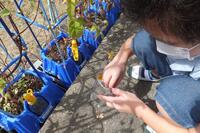 8月31日(火)。1年生は春に植えたアサガオを1学期中は学校で、夏休みは家に持ち帰って大切に育ててきました。種からスタートしたアサガオも、葉を出し,花を咲かせ、たくさんの実をつけました。そして乾燥した実からたくさんのたねがとれるようになりました。