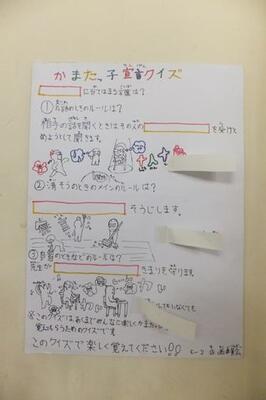 9月6日(月)企画委員会の児童たちが、本校で進めている「かまたっ子宣言」を意識してもらおうと、「かまたっ子宣言」にかかわるクイズを考え、ポスターにして張り出しました。とても楽しく仕上がっています。ぜひ、クイズの答えを考えながら、全校生で意識して生活していけるといいなと思います。