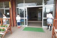 7月になり朝、玄関先で企画委員会の子どもたちが「あいさつ運動」を行っています。手にはメッセージボードを持ち、登校する子どもたちに元気な「おはよう」のあいさつを投げかけています。あいさつの輪がどんどん広がるといいなと思っています。