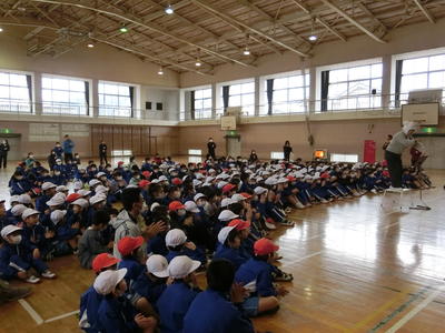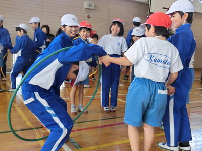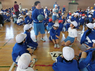 11月20日(水)体育館で「なかよし集会」が行われました。なかよし集会実行委員の4・5・6年生の進行のもと、『ボール運びゲーム』『爆弾回しゲーム』『○×クイズ』『フラフープくぐり』の4つのゲームを、班ごとに楽しく行うことができました。これらの活動を通してまた一つ班のまとまりが強くなりました。