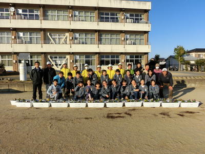 11月26日(火)鎌田地区青少年健全育成推進員と交通安全母の会の皆様そして飼育栽培委員の5・6年生で今年も「花いっぱい運動」を行いました。