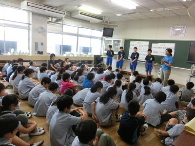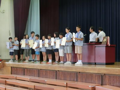 子どもたちは夏休みの楽しい思い出をそれぞれの学級でたくさん話していました。また、特設水泳部や合唱部のみなさんは、大会では大変すばらしい成績をおさめることができました。子どもたちの活躍を励みに、2学期の様々な活動に全力で取り組んでいきたいと思っています。