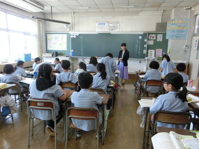 7月1日から5日の5日間、鎌田小に北信中学校の2年生4人が、職場体験(ドリームアップ事業)にやってきました。みんな2年前に鎌田小学校を卒業した先輩です。水泳の補助を始め、授業では子どもたちの学習のアドバイスをしたり、休み時間は一緒に遊んだりと、充実した毎日を送ることができました。