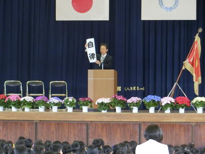 始業式では、校長先生から、「今年は「自律」を目標にがんばろう」とお話がありました。