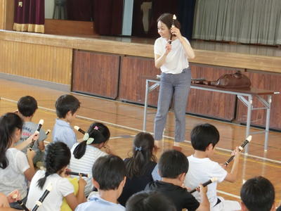 5校時に、3年生を対象にリコーダー講習会が行われました。東京リコーダー協会から講師の先生をお招きし、上手に吹くためのコツを教えていただきました。子どもたちは、先生の話をよく聞き、一生懸命練習することができました。