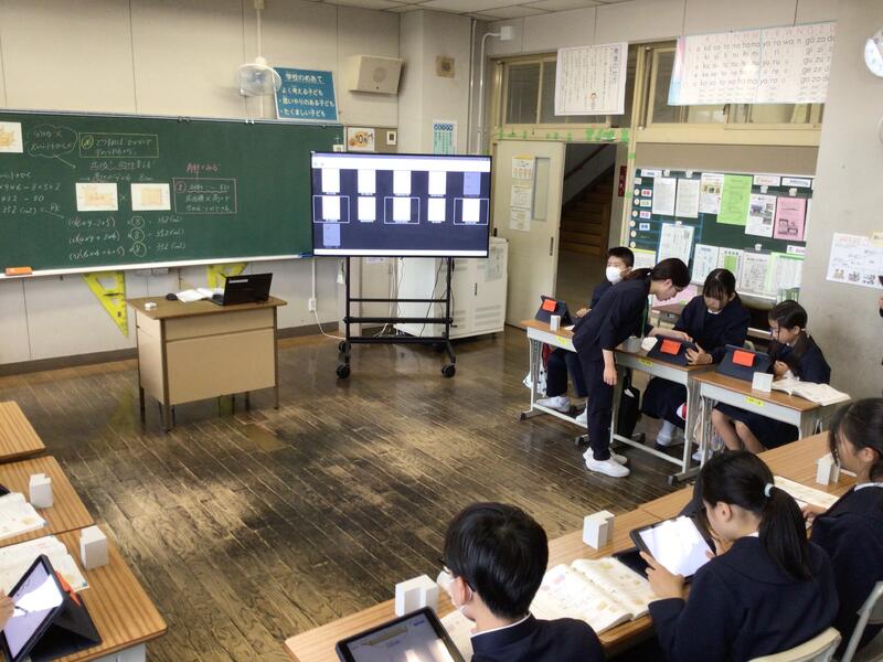 水が流れる様子を動画で撮影し、自分たちの予想と確かめ合っていました。