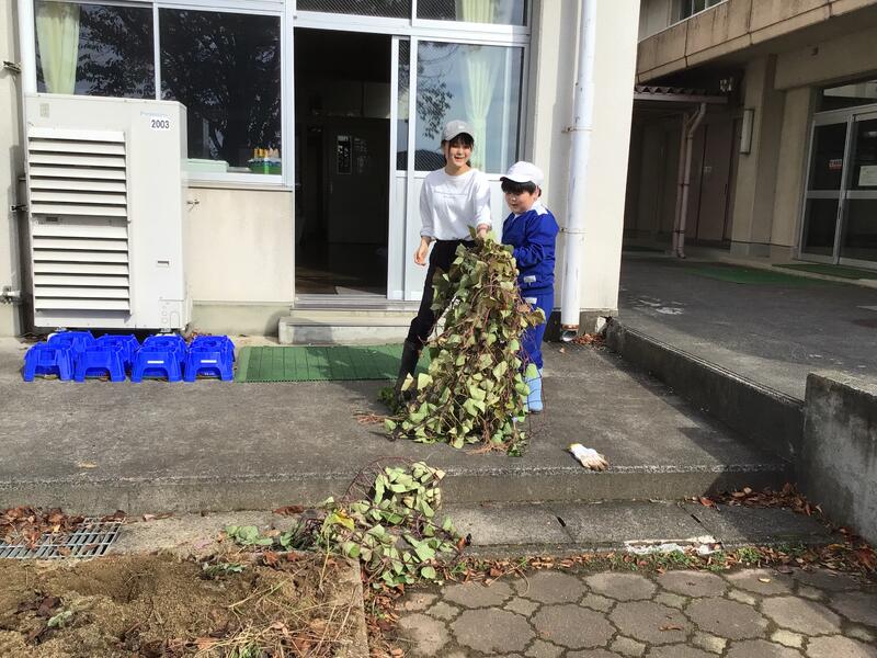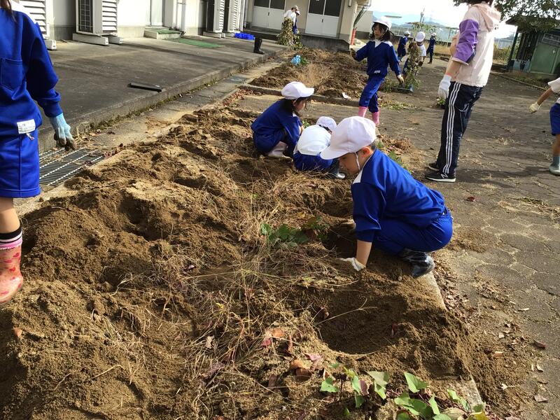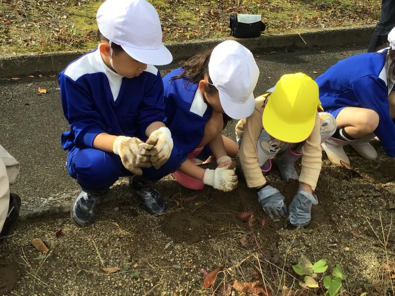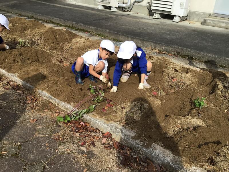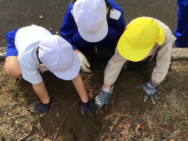 今日は、1、2年生が大切に育ててきたさつまいもを収穫しました。