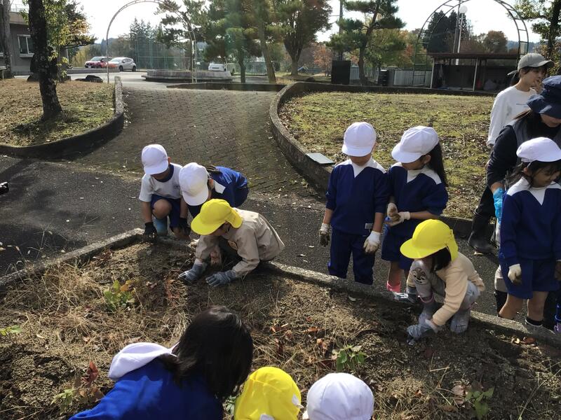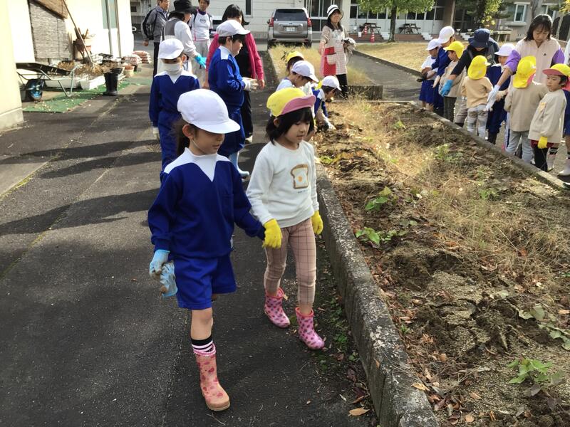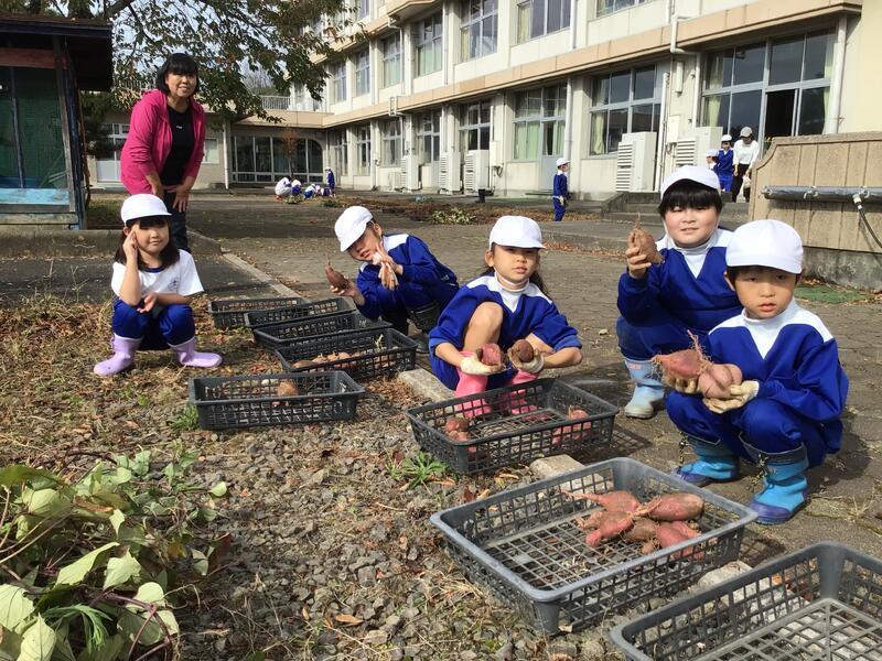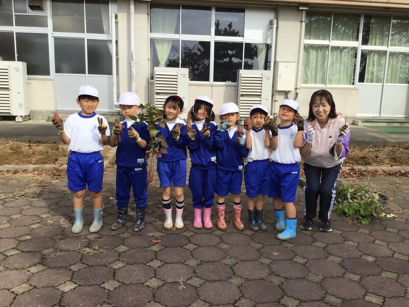 1、2年の子供たちは、自分たちの芋掘りが終わると、まつかわ幼稚園のお友達のさつまいも掘りをお手伝いしました。