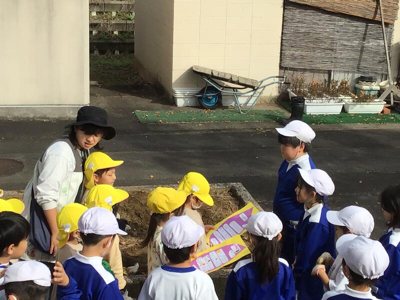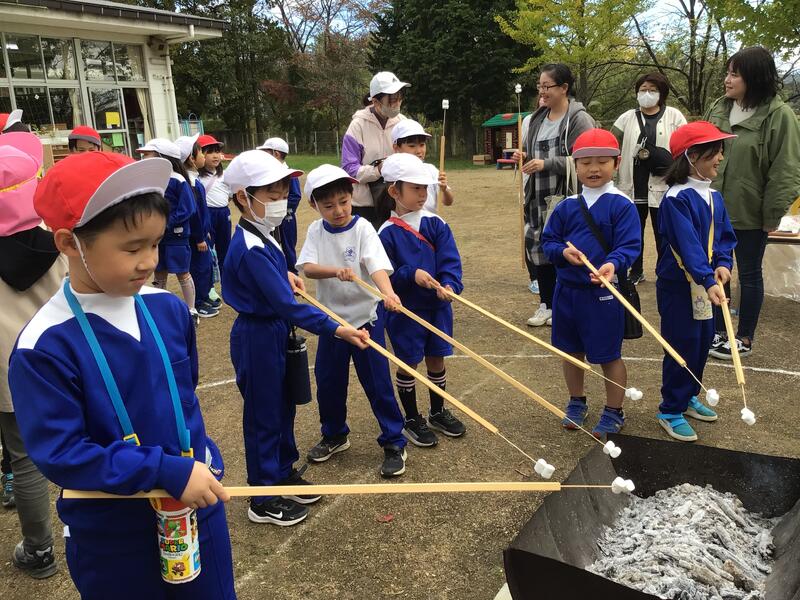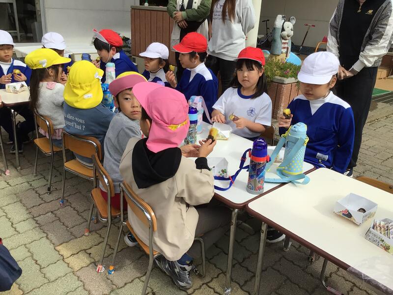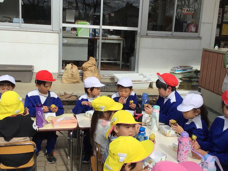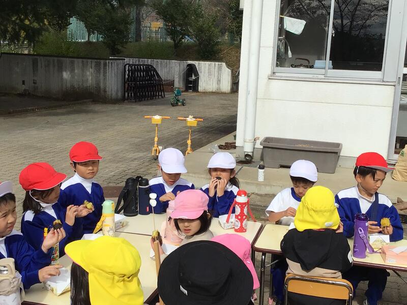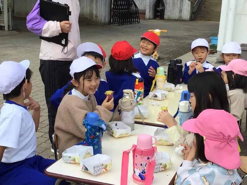 とっても甘くておいしい焼き芋を頬張って、子供たちはうれしそうです。まつかわ幼稚園のお友達が育てたさつまいもは、大きくて栄養たっぷり。子供たちの心まで温めてくれました。