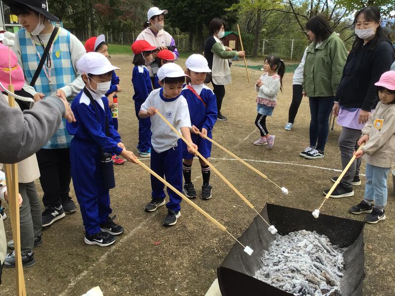 今日は、子供達が楽しみにしていた「焼き芋パーティー」!まつかわ幼稚園のお友達にご招待いただき、元気いっぱい楽しみました。