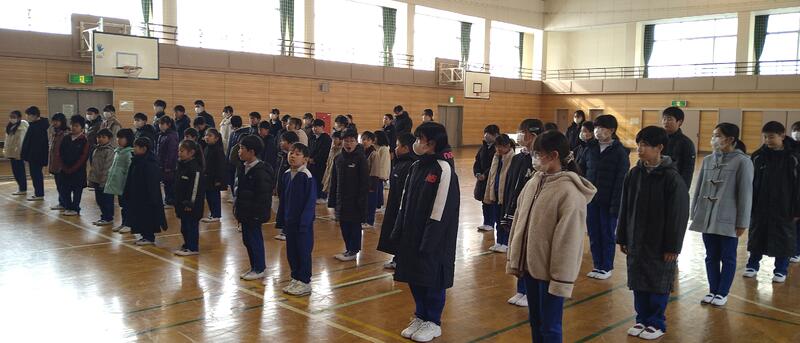 今日は、14:45から松川小学校アリーナにて「大友良英さんによる校歌練習会」が行われました。本校からは6年生10名が参加しました。会場に集まったのは、来年度後期課程になる子どもたちです。