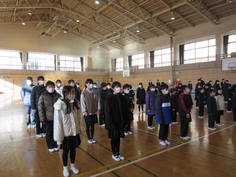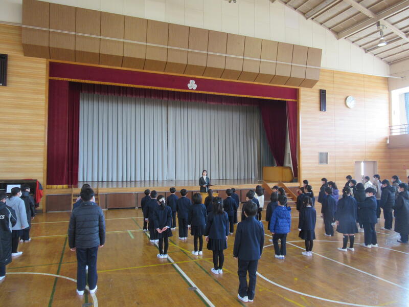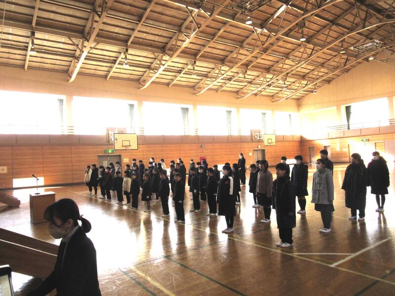 今日から、第3学期が始まりました。体育館で始業式を行い、新年の思いをみんなで共有するとともに、全員で校歌を歌いました。