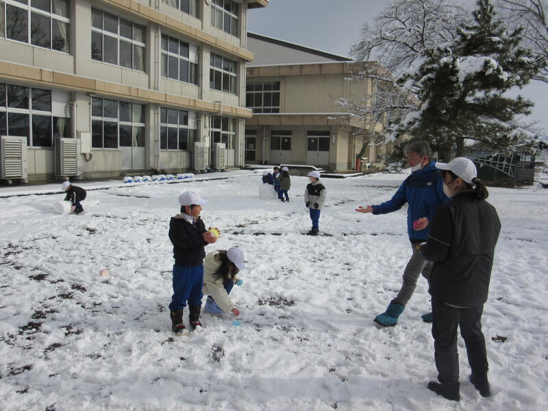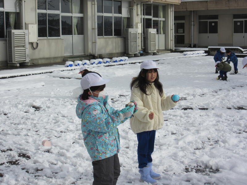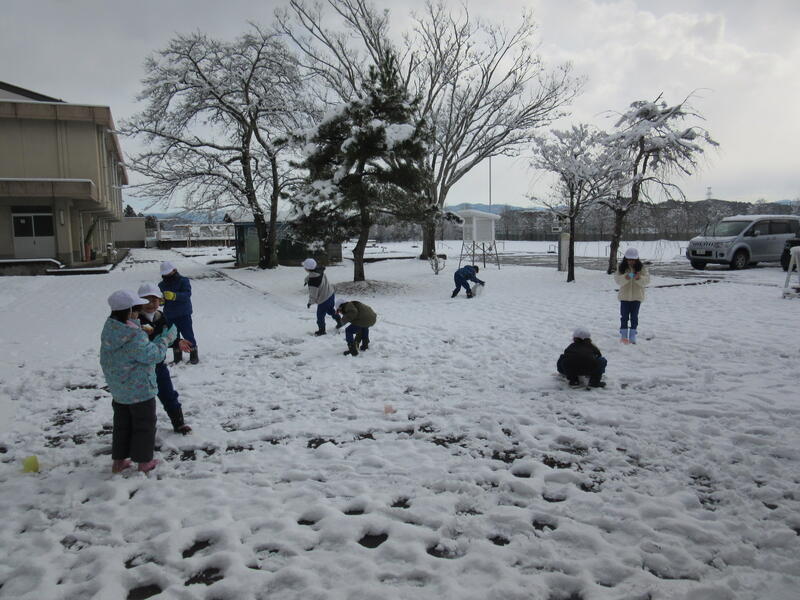 第3学期の2日目。今日は、雪が積もりました。雪遊びができるくらい積もったのは、今シーズン初です。