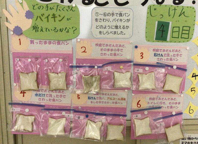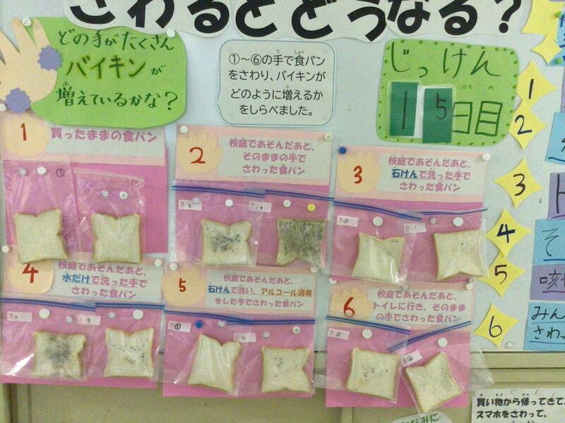 12月1日に掲載した「保健体育委員会の手洗い実験」についての、経過報告です。その後の食パンは、どうなったでしょうか。
