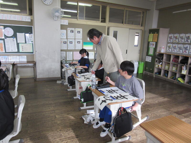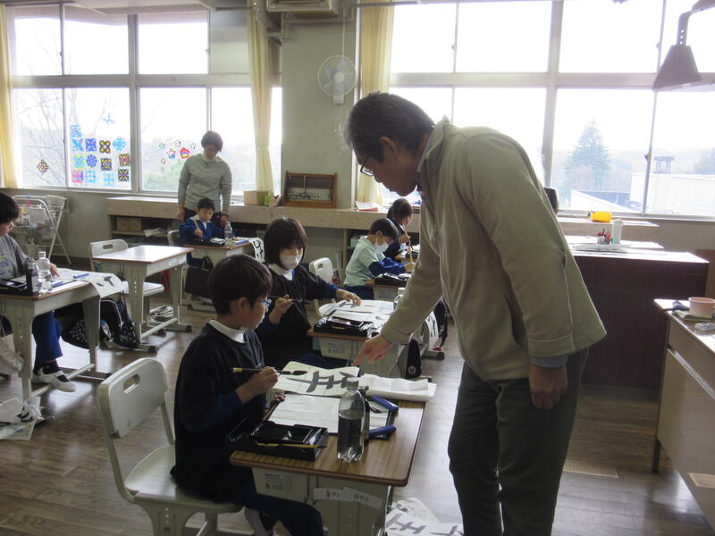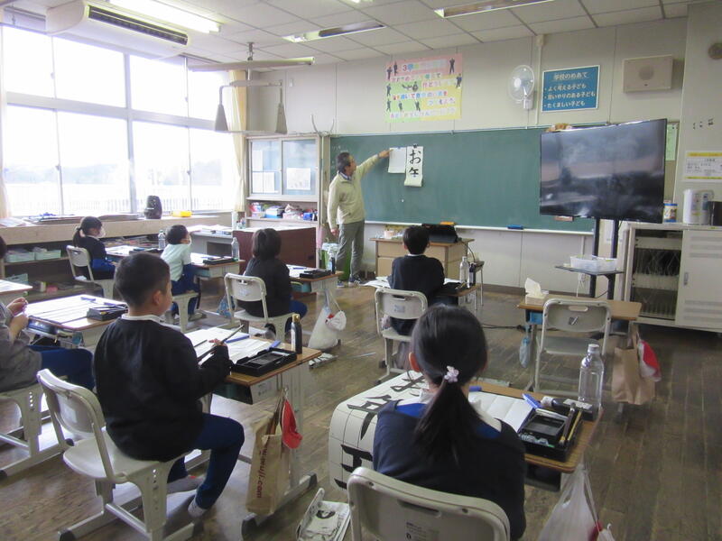 12月12日(木)、3年生と6年生の「書初め教室」を実施しました。講師の先生は、まつかわ幼稚園長 遠藤 嘉人 様です。