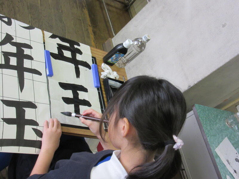 2時間が経つころには、条幅紙1枚に書き上げることができました。※3年生は「お年玉」です。