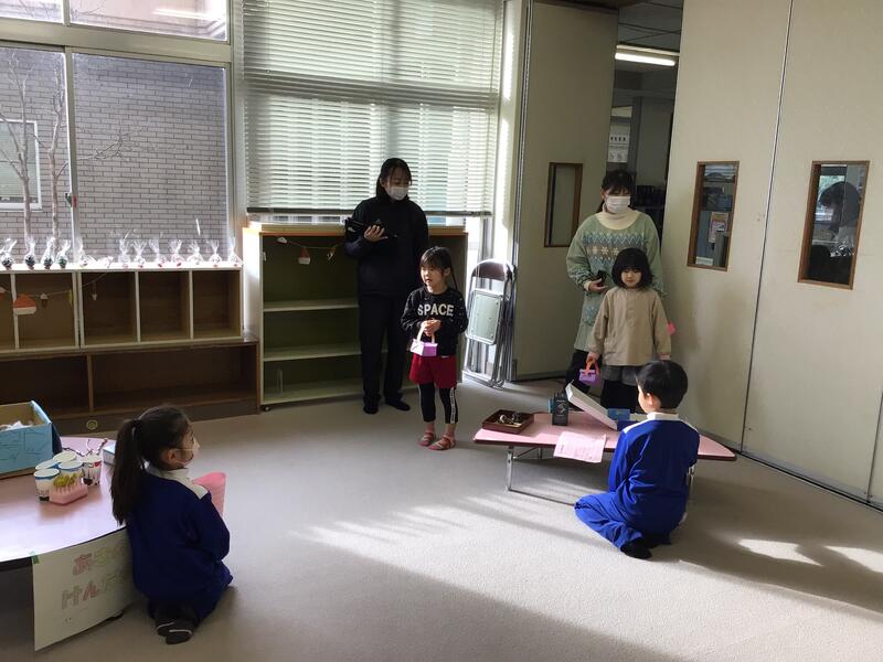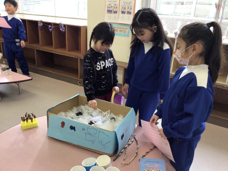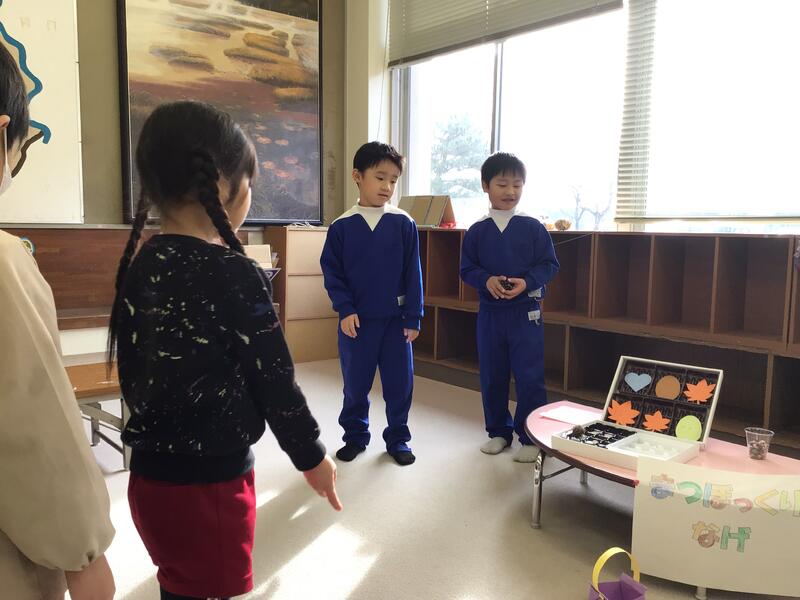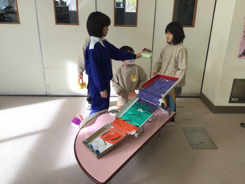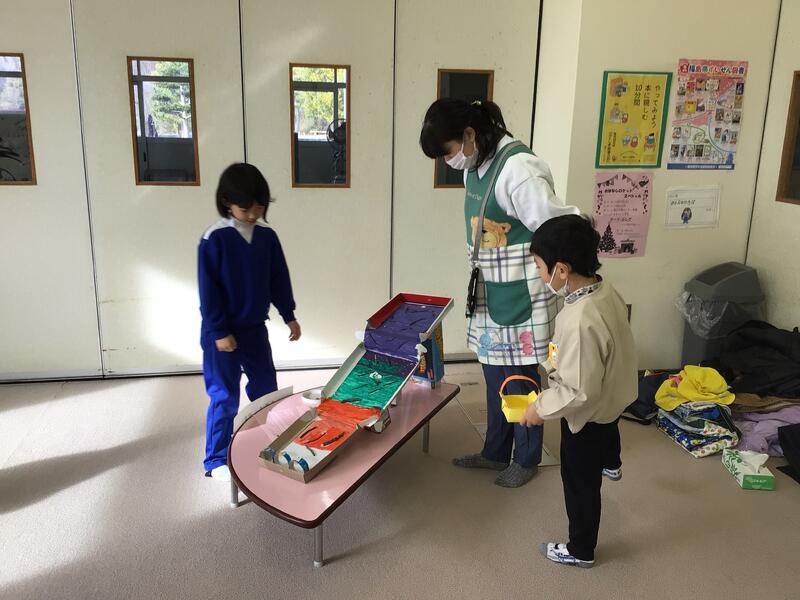 幼稚園のお友達は、1年生が工夫して作ったおもちゃ屋さんで、たっぷり遊んでくれました。