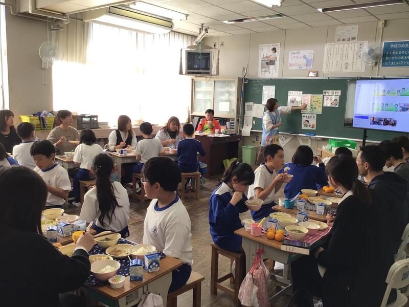 子供たちが、保護者の皆さんの給食を準備して、「いただきます!」みんなでおいしい給食をいただきました。