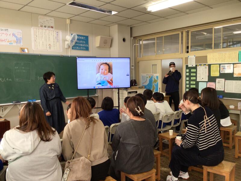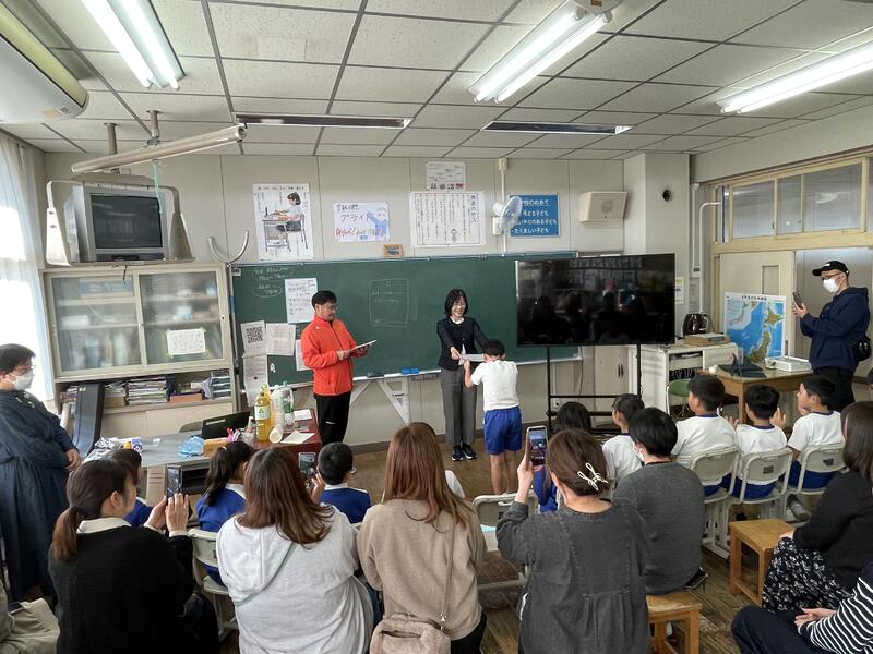 お昼休み時間から始まった、二分の一成人式。保護者の皆様と一緒にお祝いをしました。