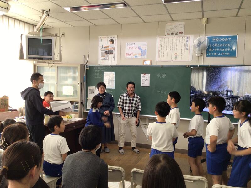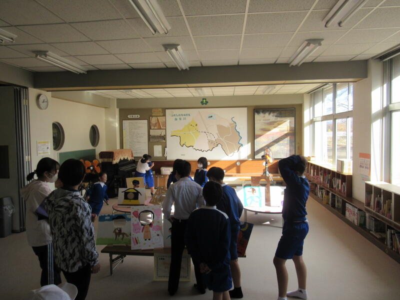 新校舎での交流活動は、今回が初めて。子供たちは、「学校がとってもきれいだったよ。」「木がたくさん使われていて、なんか落ち着くっていう感じだったよ。」「楽しかった!」と、素直な感想を聞かせてくれました。