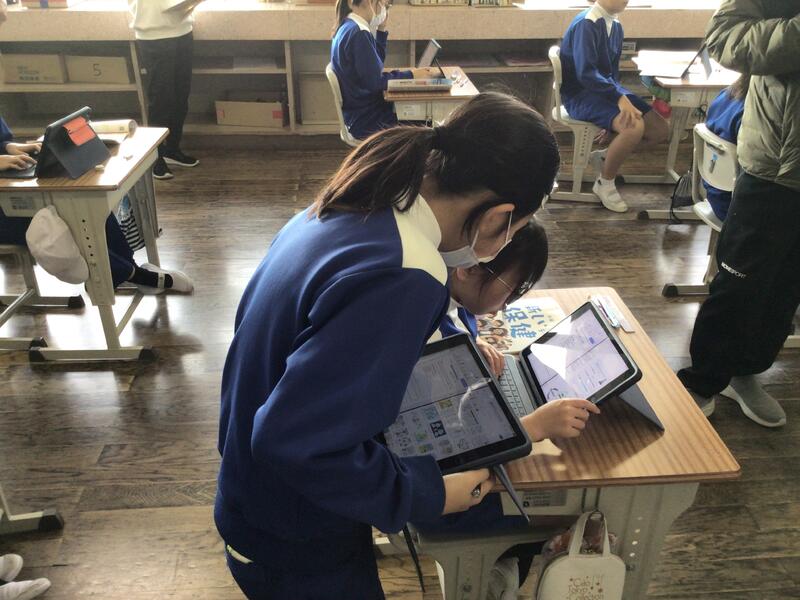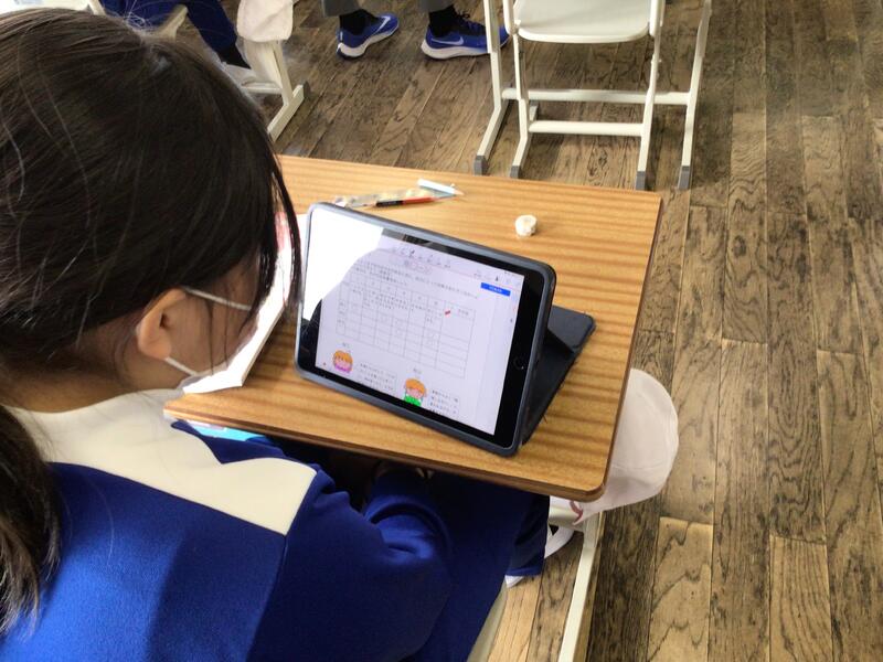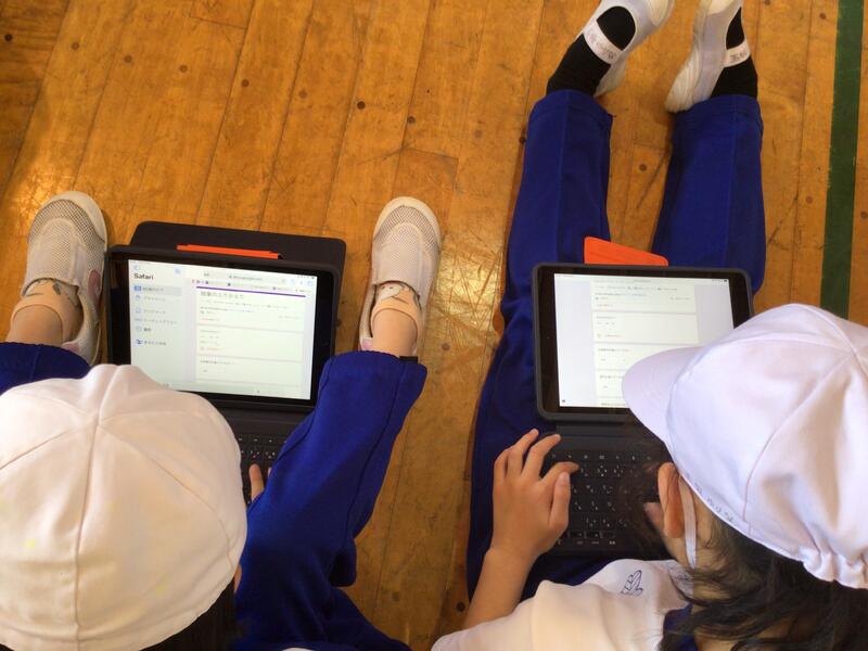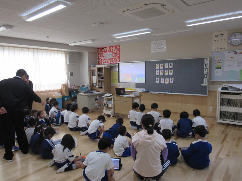 金谷川小学校でも授業をしてくれるジェシー先生がいらっしゃいました。タブレットを使ったクイズ等に答えながら、みんなで一緒に英語学習を楽しみました。