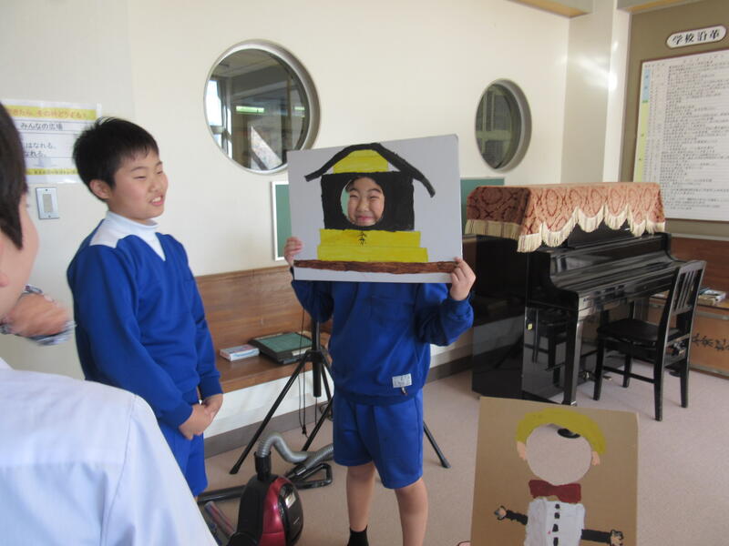 3年生は、図画工作科の授業で、顔出しパネルを作りました。ただし、単なる顔出しパネルではありません。「ワクワク」するようなスペシャルなパネルです。いよいよ、全校のお友達に披露する日がやってきました。