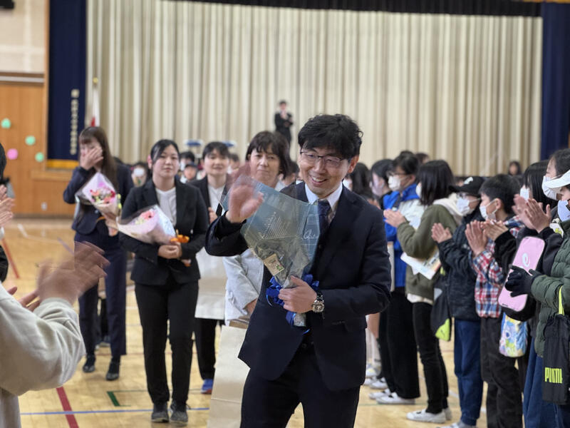 3月29日(金)、人事異動により転任する教職員の離任式を行いました。本校からは3名の教職員が離任となります。教職員の在職中は、保護者ならびに地域の皆様方に公私にわたり格別のご厚情を賜り、心より御礼申し上げます。新たに本校に着任する教職員に対しましても、引き続きご支援とご協力を賜りますよう、よろしくお願い申し上げます。