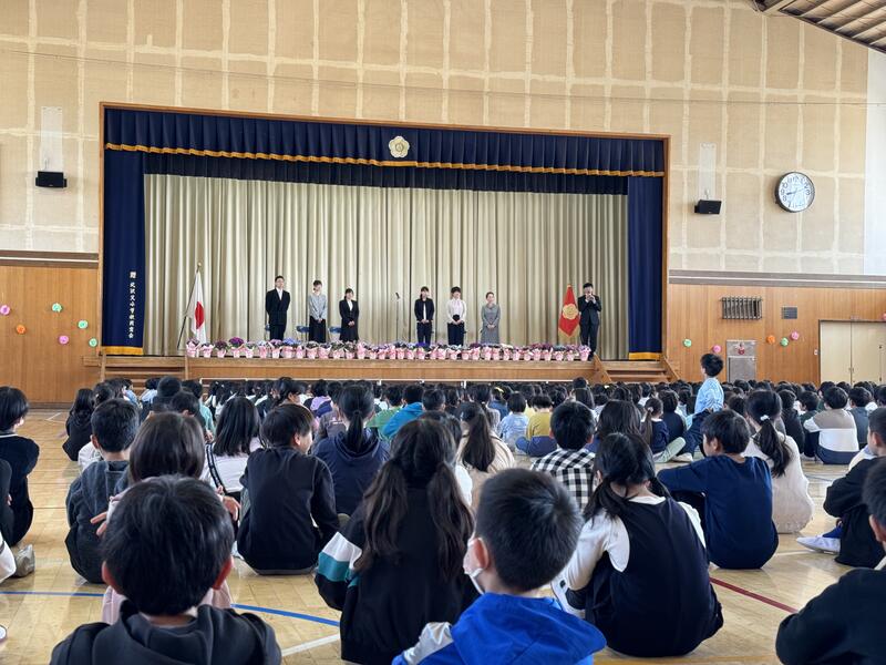 4月8日(月)より新年度が始まり、着任式と1学期始業式を行いました。学年が一つ上がり、新たに始まる学校生活に期待を膨らます児童の姿がとても印象的でした。新年度のスタートを祝福するかのように、校庭の桜もきれいに咲き誇っていました。