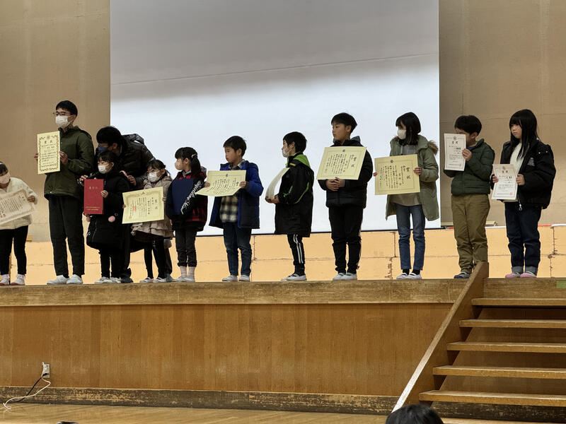 また、終業式に合わせて表彰式も行いました。賞をもらった感想や頑張ったことなどを、校長先生が児童にインタビューするという、ユニークな表彰式になりました。