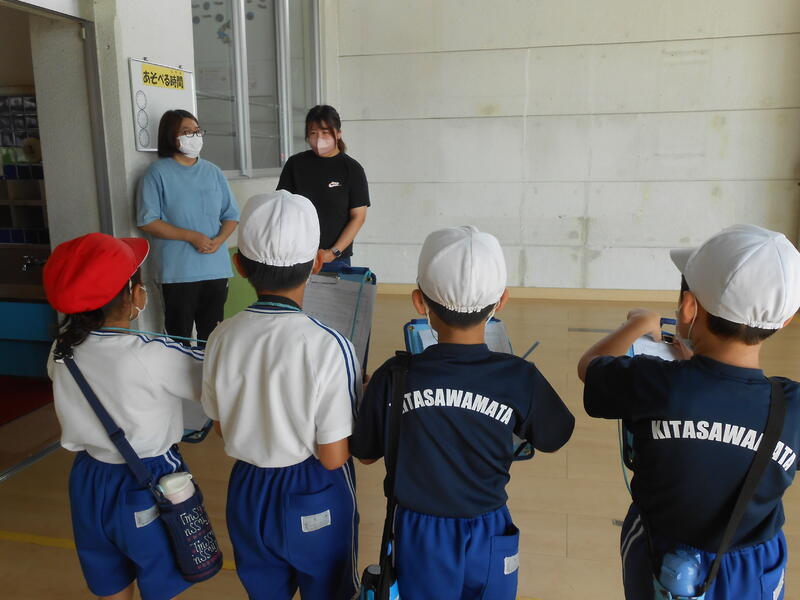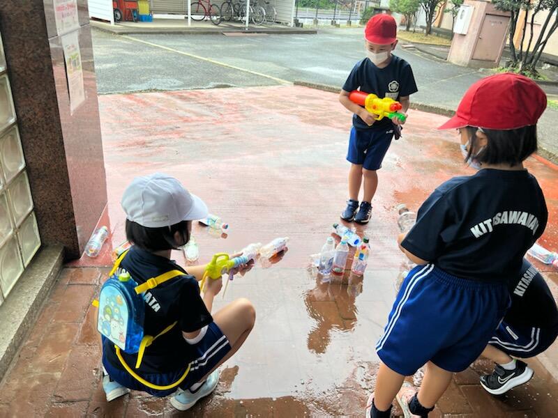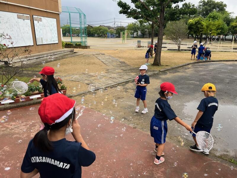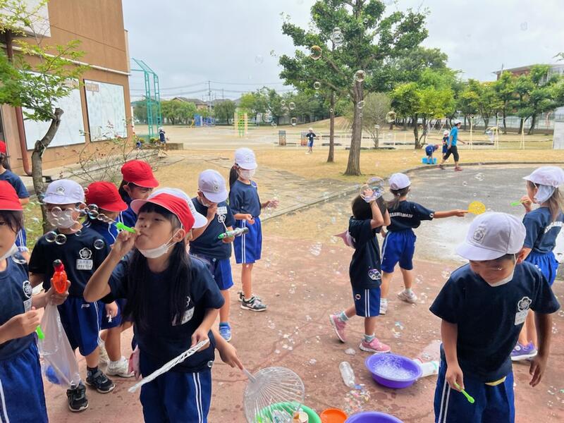 9月には、生活科で水遊びを行いました。自分たちでやりたいことを計画しました。シャボン玉や水鉄砲などをみんなで楽しむことができました。