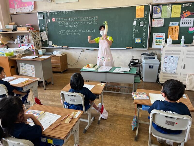 学活では、給食の先生に入っていただき、「すききらいをなくそう」というめあてで授業を行いました。