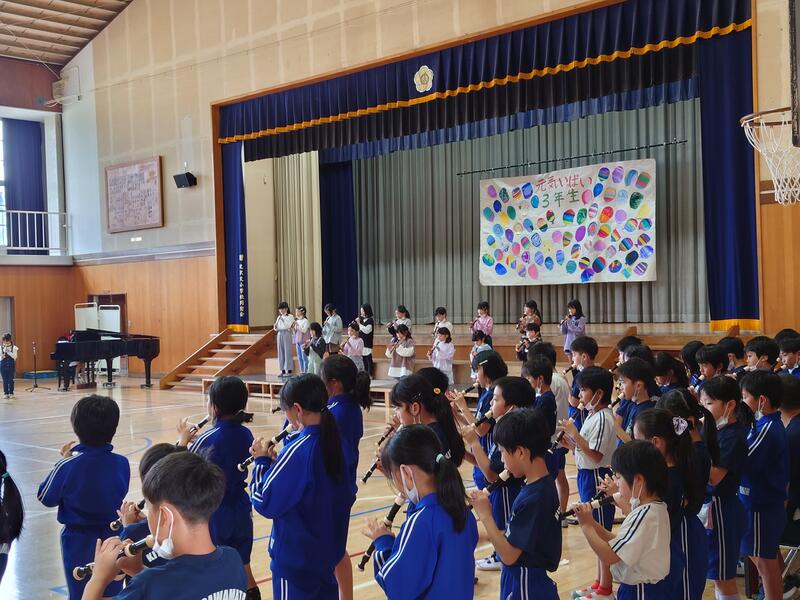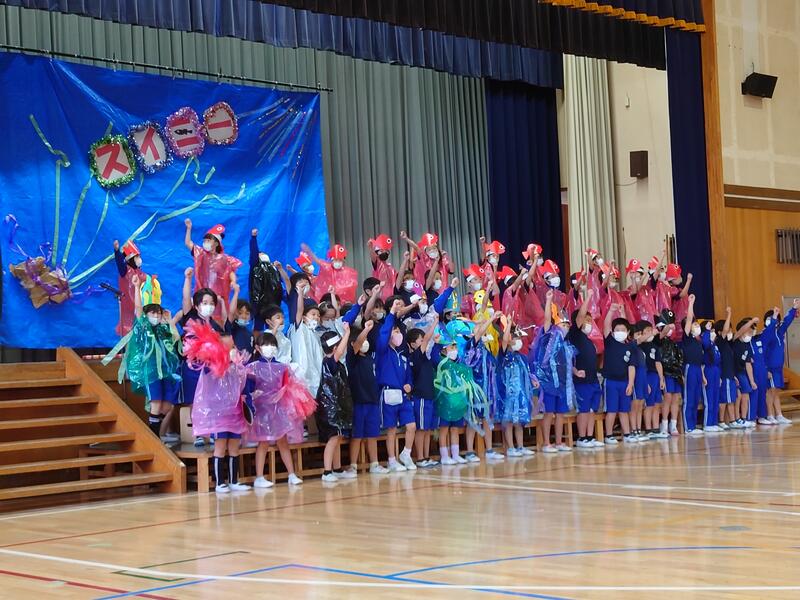 10月22日(土)、3年ぶりとなる学習発表会を行いました。会場の出入り口を保護者用と児童用とに分け、会場内の移動を一方通行にしたり、学年の発表が終わる都度に消毒作業を行ったりするなど、感染予防対策を講じながらの実施となりました。