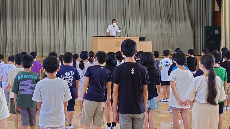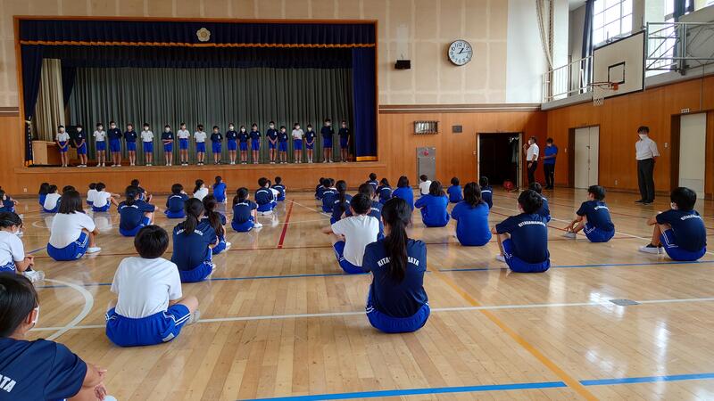 校長先生からは、「2学期は、体の成長、頭の成長、心の成長を目指してがんばろう。心が成長するためには、人を思いやる、人に感謝する、考えの違いを認めることが大切です。」という話がありました。また、始業式にあわせて、たなばた展と水泳競技大会の表彰も行いました。