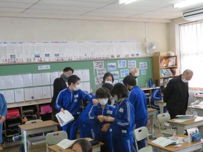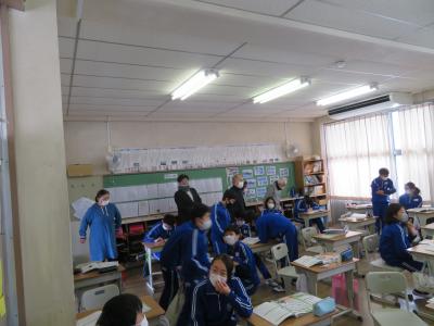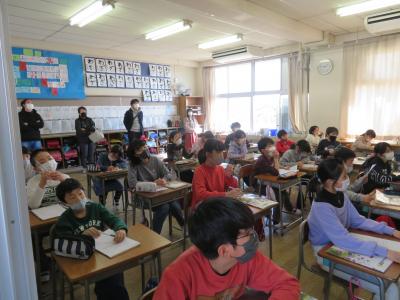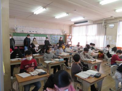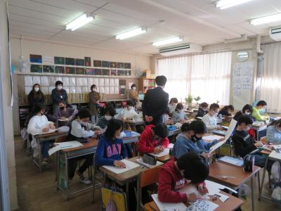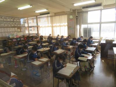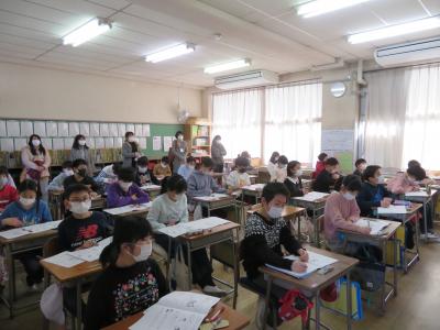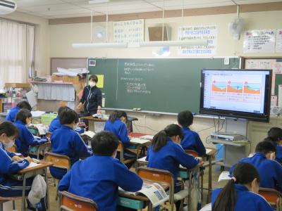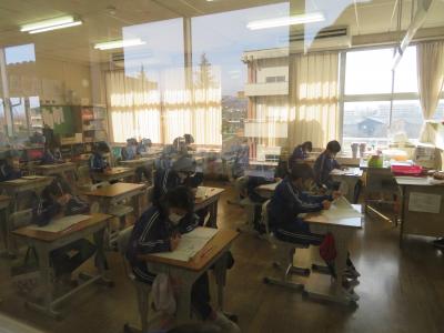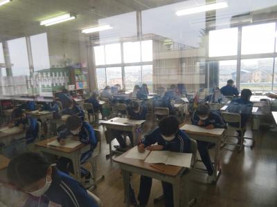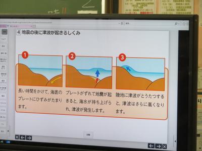 5年生の様子です。社会と理科でした。社会では「自然災害を防ぐ」という学習で、地震による津波の内容でした。2日前に大きな地震を経験したばかりなので、経験をもとに真剣に学習に取り組んでいました。