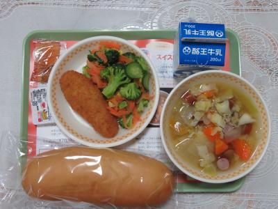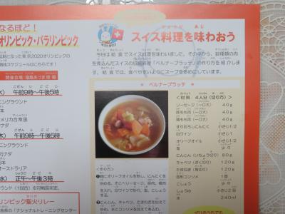 今日の給食は「オリパラ献立」でした。福島市はスイスのホストタウンになっているので、「スイス料理を食べて、スイスのことをより知ろう」という献立です。「ベルナープラッテ」という料理が出ました。とてもおいしかったです。ぜひ、おうちでも。私は初めて食べました。(おそらく)