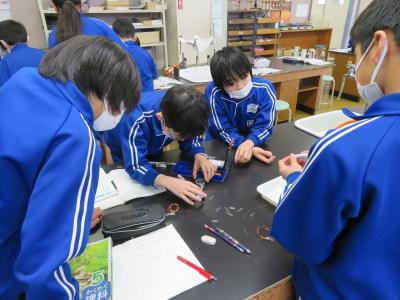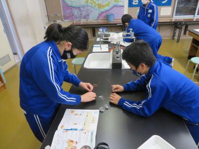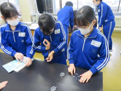 理科は電磁石の内容でした。コイルを使って実験をしていました。S極とN極ができることを方位磁針を使って確かめていました。