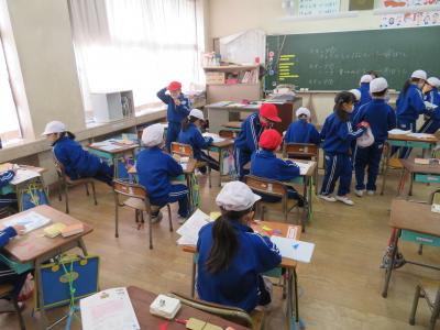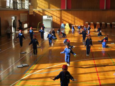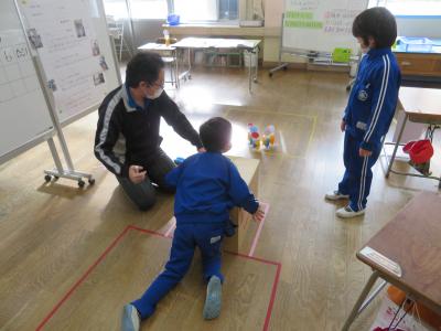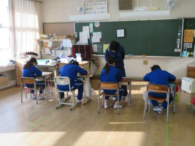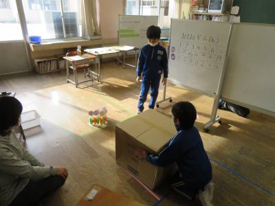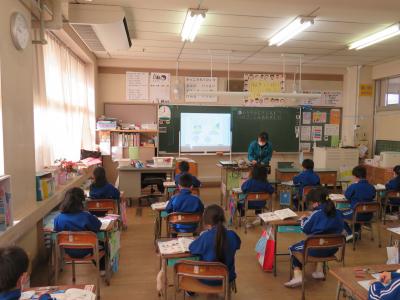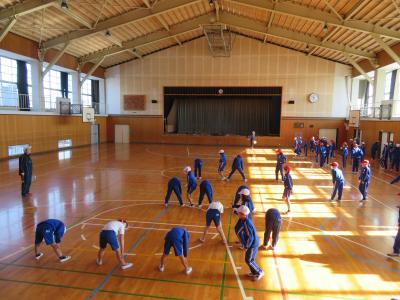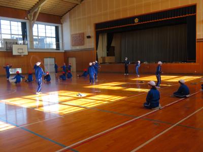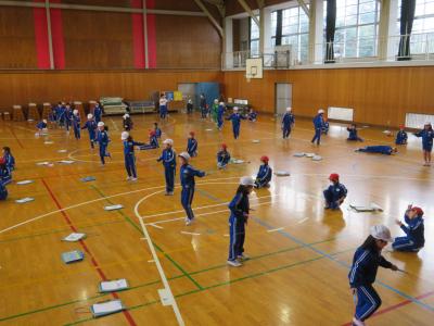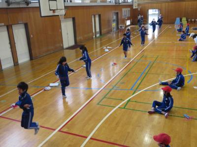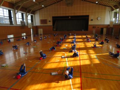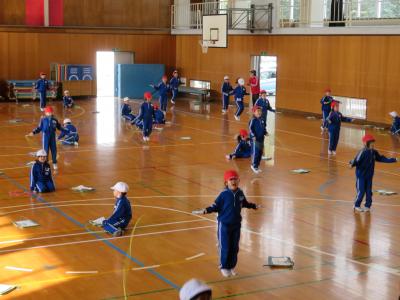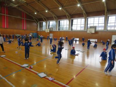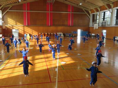 2学級が体育をしていました。体育館を2つに分け、縄跳び運動と跳び箱運動をしていました。体育館の中に日差しが入ってきていたので、暖かでした。たくさん動いて、しっかりと体も鍛えようね。